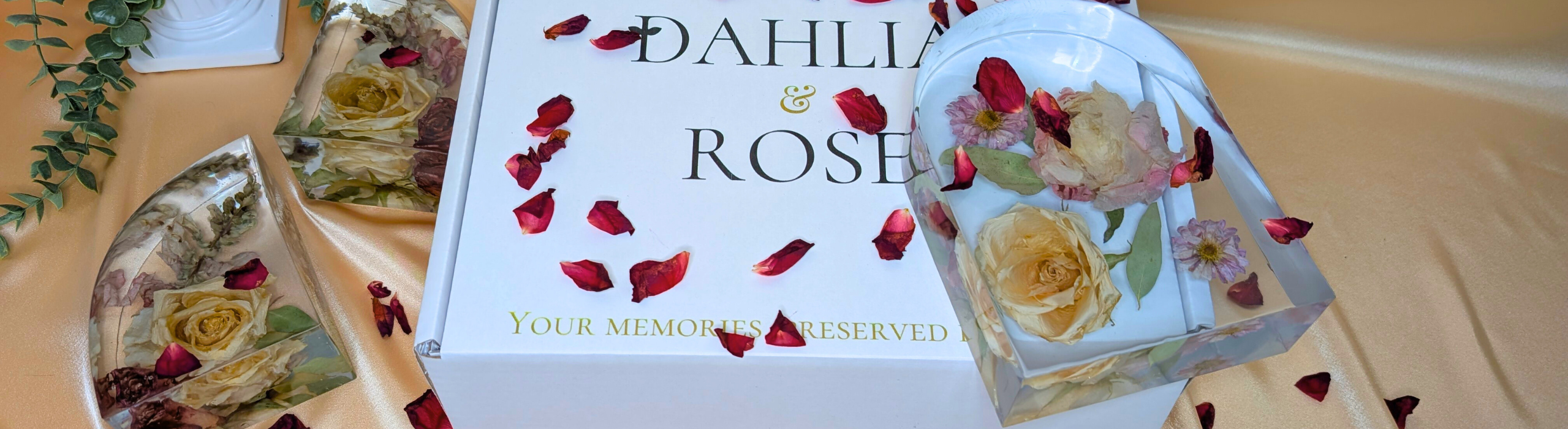 We are a female-owned luxury UK-based bouquet preservation service situated in the heart of the midlands and were born out of the desire to marry creativity with functionality and a love for all things flowers! Our founder spent countless hours upon hours testing and researching resin preservation before finally starting Dahlia & Rose.